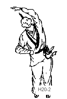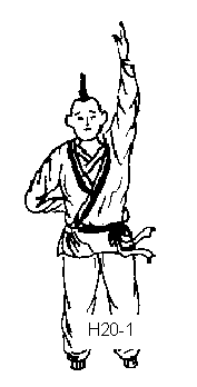 1.2.Khất thân thám chưởng (nhiêng mình xuất chưởng) : quyền phải đưa ra sau lưng (huyệt Mệnh-môn). Quyền trái đưa lên khỏi đầu. Lưng, đầu từ từ nghiêng qua phải. Tay trái vòng qua đỉnh đầu nghiêng theo, tay phải tự nhiên bị vòng ra phía hông. Sau đó toàn thân chuyển sang phải, trong khi hai chân giữ nguyên vị trí. Mắt nhìn đầu bàn tay trái.