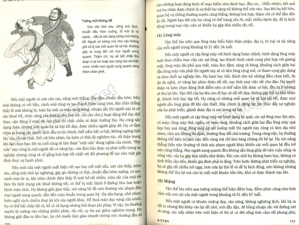 Xem Tướng Biết Người Lời nói dầu Ứng dụng kỳ diệu của nhân tướng học Nhân tướng học trong tư liệu lịch sử Cách tuyển chọn và đánh giá nhân tài trong thời hiện tại Các danh nhân nổi tiếng trong lịch sử Lợi ích của nhân tướng học đối với nguồn quản lý nhân lực + Bài học đầu tiên khi xem tướng Tướng do tâm sinh - bạn không thể không tin Hãy xem ngũ quan bộc lộ nội tâm của bạn như thế nào Tinh - khí - thần - những yếu tố không thể bỏ qua trong nhân tướng học Thế nào là tướng tốt Các khái niệm cơ bản trong xem tướng mặt + Khuôn mặt chính là 1 vũ trụ thu nhỏ Trên mặt có càn khôn Trên khuôn mặt có sông có núi Cuộc đời qua nét mặt Xem mặt đoán lưu niên cát hung Dấu hiệu bệnh tật biểu hiện qua tướng mặt + Mỗi bộ phận trên khuôn mặt điều ẩn chứa nhiều bí mật Mắt - bộ phận quan trong nhất trong ngũ quan Lông mày - bộ phận không thể bỏ qua Mũi - Không kẻ ăn mày nào có mũi đẹp Miệng không chỉ để ăn mà còn để nói Xem tai phán đoán về phúc khí Người có xương ngò má nhô ra thường có tính tranh đấu cao Ấn đường là vận mệnh cả dời Trán - Không chỉ tượng trương cho tuổi thọ Răng, lưỡi chứa đựng huyền cơ Nhân trung đóng vai trò rất quan trọng Nếp nhăn pháp lệnh không chỉ tượng trưng cho tuổi già Tìm hiểu về chiếc cằm Làm thế nào để quan sát khí sắc + Một phút nhìn thấu tâm can 1 Những cô gái sùng thượng vật chất Lấy được chồng giàu chưa hẳn phải là người xinh đẹp Cô gái tự luyến chỉ biết đến mình Cô ấy là ngọn lửa giữa đêm đông Phát hiện mẫu hình phụ nữ tai quái Nhận biết những cô gái thích đóng kịch Thế nào là cô gái gặp ai cũng yêu Tính cách ương bướng sẽ thể hiện trên nét mặt Bộ dạng của kẻ lật lọng Mẫu hình phụ nữ tài cán xốc vác Sự tài hoa, sắc sảo thể hiện qua nét mặt Khuôn mặt của người quen phục tùng nhẫn nhịn Những cô gái luôn cho mình là nhất Mẫu phụ nữ xấu xa từ trong trứng Mẫu hình phụ nữ dễ kích động + Một phút nhìn thấu tâm can 2 Vận mệnh đánh dấu trên khuôn mặt của những đứa con cưng Có những người làm việc gì cũng xui xẻo Tướng mặt của những nhân vật lãnh đạo Tướng mặt của người phụ nữ mạnh mẽ Tướng mạo của người cao ngạo Đừng bao giờ động chạm đến những người như thế này Nhận diện kẻ qua cầu rút ván Ai là người chú trọng đến chất lượng cuộc sống Nhút nhát không phải là lỗi của tôi Nhận mặt kẻ đào hoa Tướng mặt của người hào phóng hiếu khách + Một phút nhìn thấu tâm can 3 Tướng mặt của người càng thất bại càng kiên cường Nhận biết người hiền hòa thân thiện Người hiền lành đến mức bị người khác bắt nạt Những người không biết giữ bí mật Những người khéo xoay sở Nhận diện những người luôn sống cô độc Tướng mạo của những người sống cô độc Những người phụ nữ bất mãn với chồng Những người thích thể hiện mình Tướng mạo của những người vui giận bất thường, hay gặp vạ miệng Khuôn mặt của những người cứng rắn Mẫu người luôn trói mình trong trầm cảm Đi tìm một tình yêu cho riêng mình Tướng mặt của người lụy tình Tướng mặt của người kiêm tốn, hiền hòa Tướng mặt của người tự tin, lịch thiệp Tướng mặt của những người thực tế Tướng mạo của người giàu lòng tự trọng Tướng mặt của người rộng lượng, khéo léo Tướng mặt của người có chính kiến Tướng mặt của người cầu tiến Tướng mặt của người có xuất thân tốt Tướng mặt của người có quan hệ rộng Tướng mặt của người có thần kinh vững vàng Tướng mặt của người không tham danh vọng Tướng mặt của người thuở nhỏ có vận tốt Tướng mặt của người thành công trên cả sự nghiệp và tình cảm Tướng mặt của người giữ chữ tín Tướng mặt của người cần cù, chắc chắn Tướng mặt của người `tri túc thường lạc` Tướng mặt biết quản lý tiền bạc hợp lý Tướng mặt của người dịu dàng, khéo léo Tướng mặt của người biết tôn trọng người khác + Những kiểu tướng dự báo tai họa Tướng mặt của người kém duyên với con cái Tướng mặt của người thất bại trong sự nghiệp Tướng mặt của người ngạo mạn, kinh đời Tướng mặt của người vất vả, vô phúc Tướng mặt gây tai họa bất ngờ Tướng mặt thể hiện vợ chồng bất hòa Tướng mặt của người trăng hoa Tướng mặt của người tâm thuật bất chính Tướng mặt của người đanh đá chanh chua Tướng mặt của người yếu đuối, đoản mệnh Tướng mặt của người khẩu phật tâm xà Tướng mặt của người nhà nghèo, lao động vất vả Tướng mặt của người tàn bạo độc ác Tướng mặt của người gặp nhiều tai họa Tướng mặt của người phá sản, túng quẫn Tướng mặt của người bất hạnh trong hôn nhân Tướng mặt của người có gia đạo sa sút Tướng mặt của người cô độc Tướng mặt của người xốc nỗi, hiếu chiến Tướng mặt của ngườ