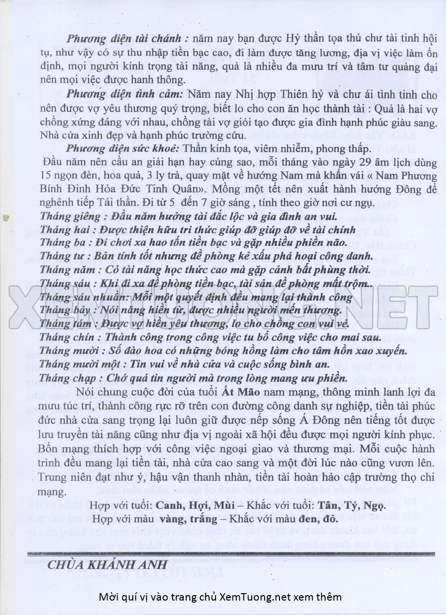 Tử Vi Năm Ất Tỵ 2025 mạng nam ẤT MÃO