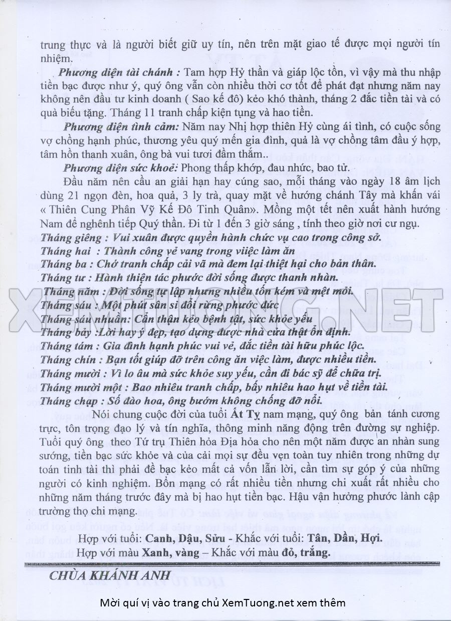 Tử Vi Năm Ất Tỵ 2025 mạng nam ẤT TỴ