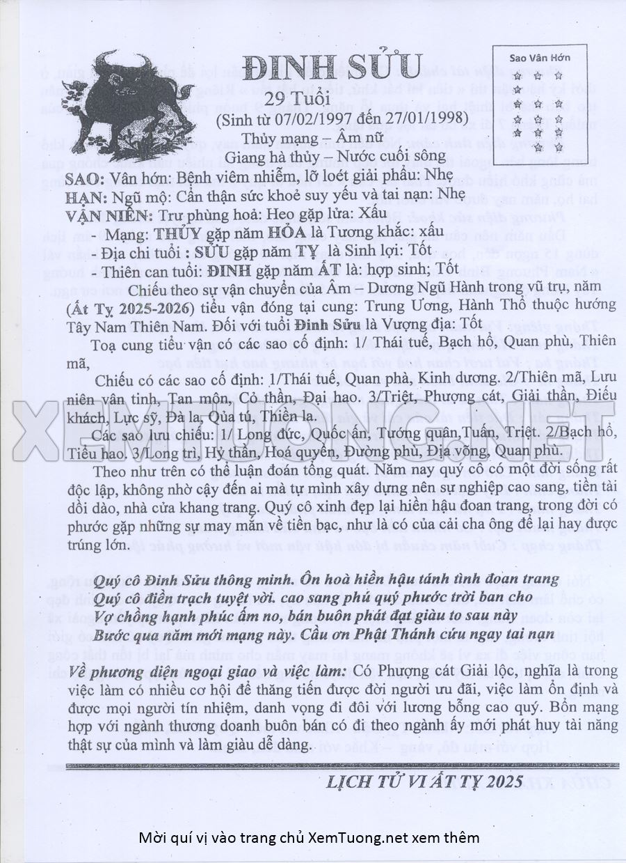 Tử Vi Năm Ất Tỵ 2025 mạng nữ Đinh SỬU