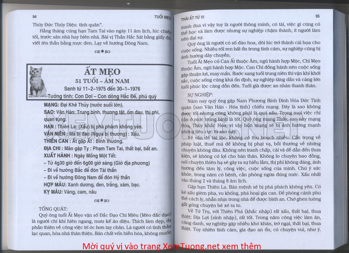 (Lưu ý: Thái Ất Tử Vi được chúng tôi scan từ sách, do đó mỗi tuổi sẽ có nhiều trang, quý vị xem xong hãy nhấn vào trang tiếp theo để xem hết phần tuổi muốn xem. Nếu quý vị xem bằng điện thoại thì hãy kéo qua lại để xem phần bị khuất.)