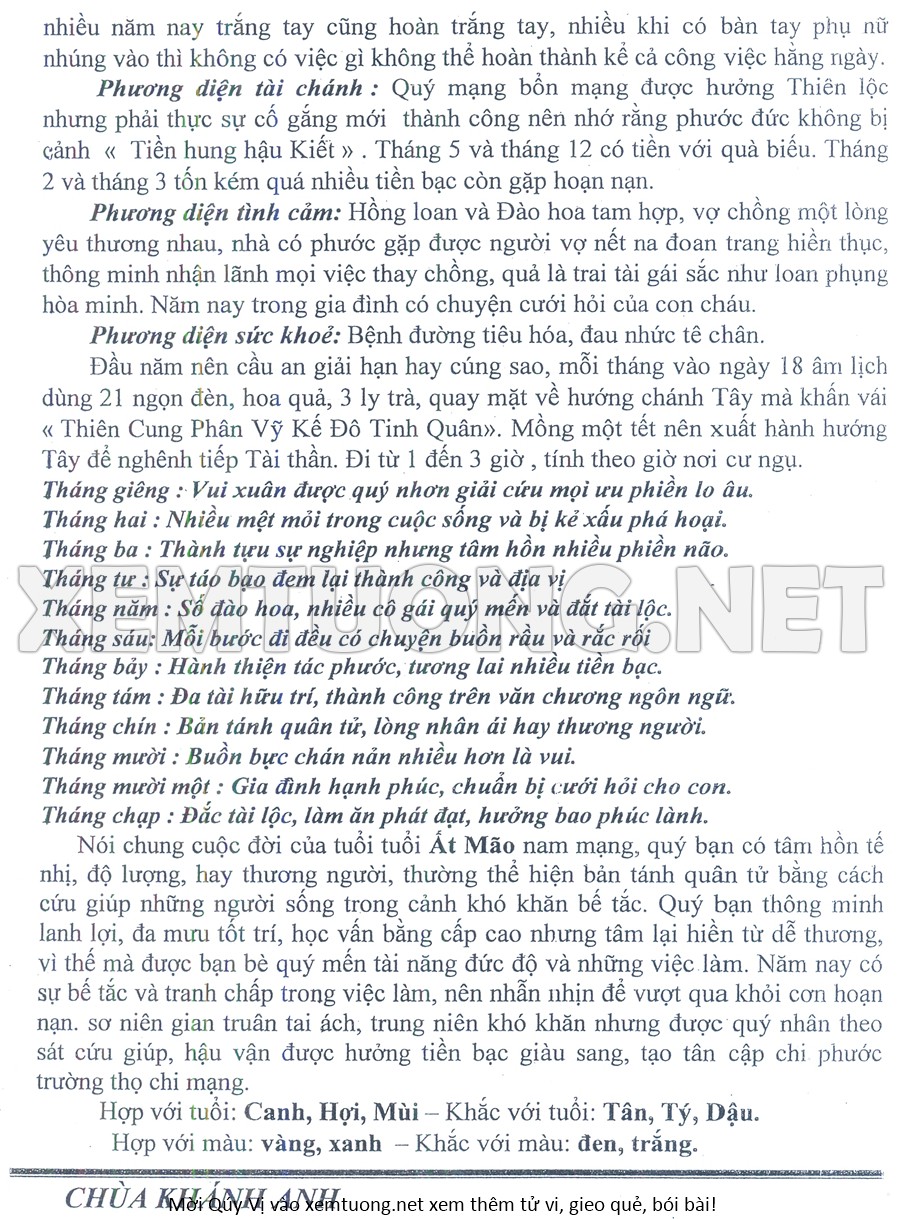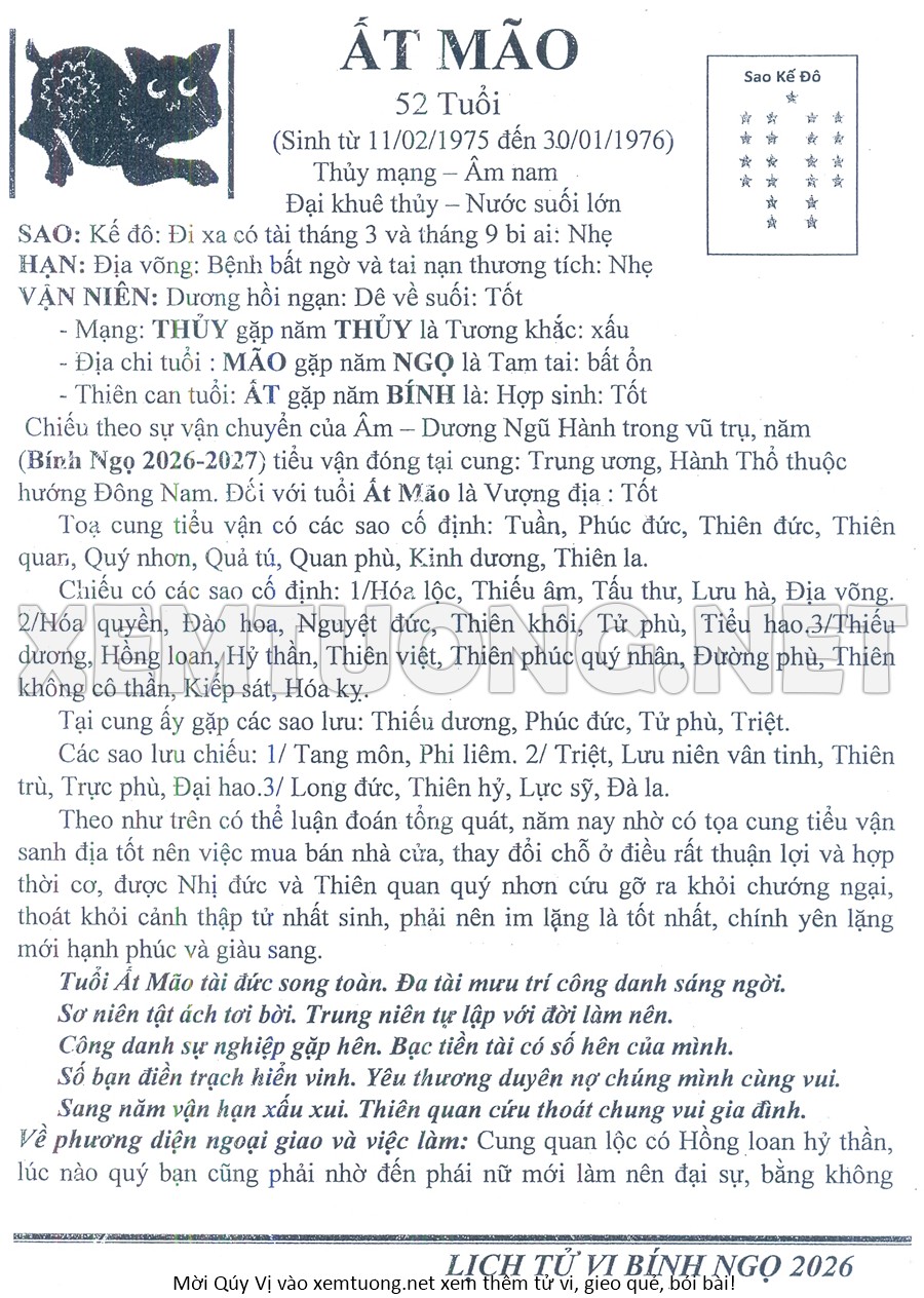 Tử Vi Năm Bính Ngọ 2026 mạng nam ẤT MÃO