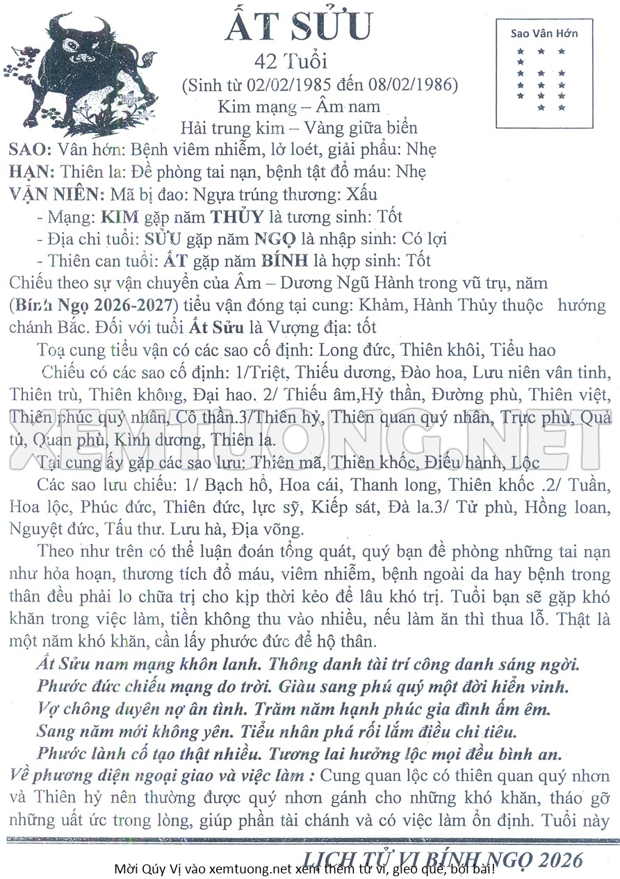 Tử Vi Năm Bính Ngọ 2026 mạng nam ẤT SỬU