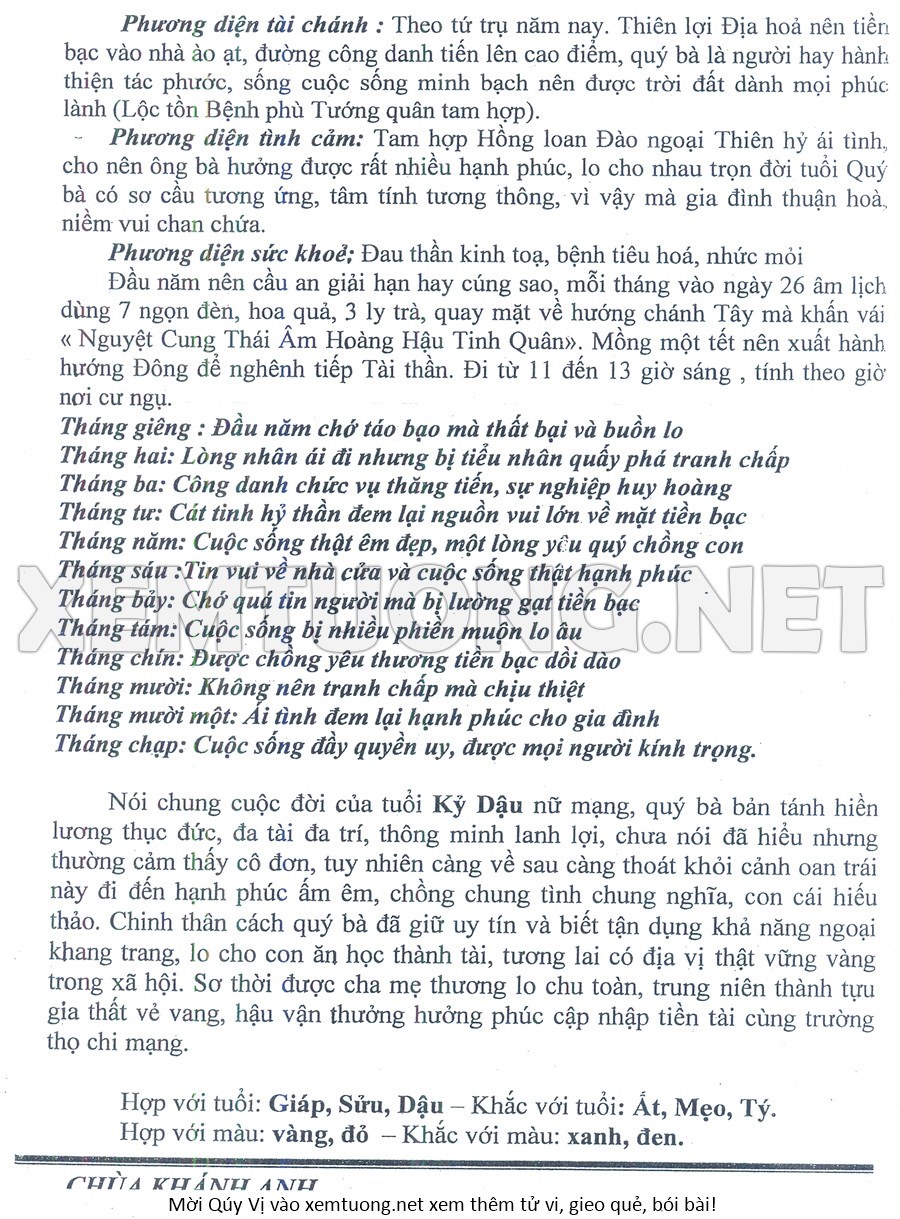 Tử Vi Năm Bính Ngọ 2026 mạng nữ KỶ DẬU
