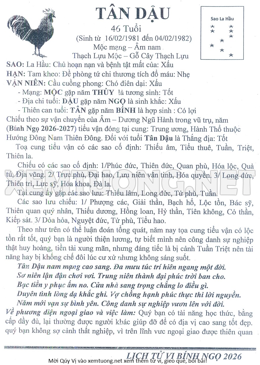 Tử Vi Năm Bính Ngọ 2026 mạng nam TÂN DẬU