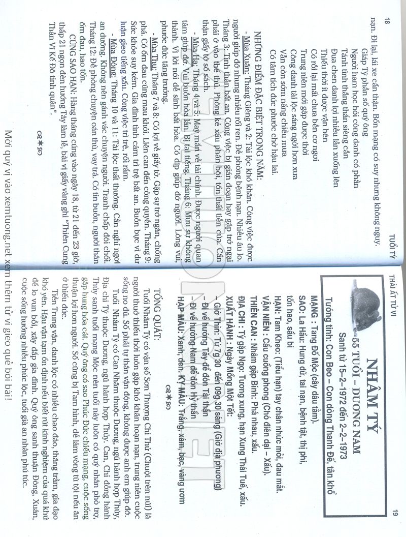 (Lưu ý: Thái Ất Tử Vi được chúng tôi scan từ sách, do đó mỗi tuổi sẽ có nhiều trang, quý vị xem xong hãy nhấn vào trang tiếp theo để xem hết phần tuổi muốn xem. Nếu quý vị xem bằng điện thoại thì hãy kéo qua lại để xem phần bị khuất.)