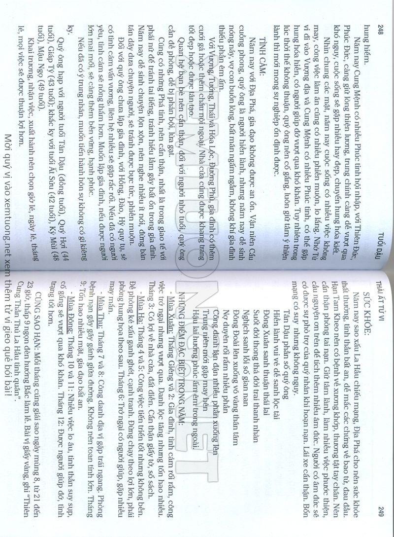 (Lưu ý: Thái Ất Tử Vi được chúng tôi scan từ sách, do đó mỗi tuổi sẽ có nhiều trang, quý vị xem xong hãy nhấn vào trang tiếp theo để xem hết phần tuổi muốn xem. Nếu quý vị xem bằng điện thoại thì hãy kéo qua lại để xem phần bị khuất.)