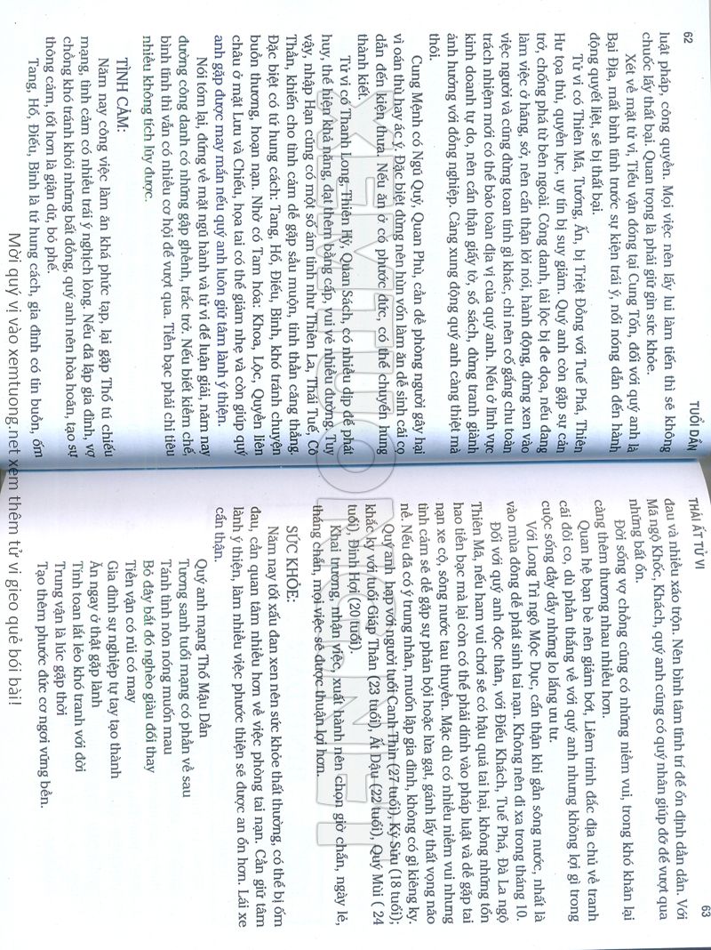 (Lưu ý: Thái Ất Tử Vi được chúng tôi scan từ sách, do đó mỗi tuổi sẽ có nhiều trang, quý vị xem xong hãy nhấn vào trang tiếp theo để xem hết phần tuổi muốn xem. Nếu quý vị xem bằng điện thoại thì hãy kéo qua lại để xem phần bị khuất.)
