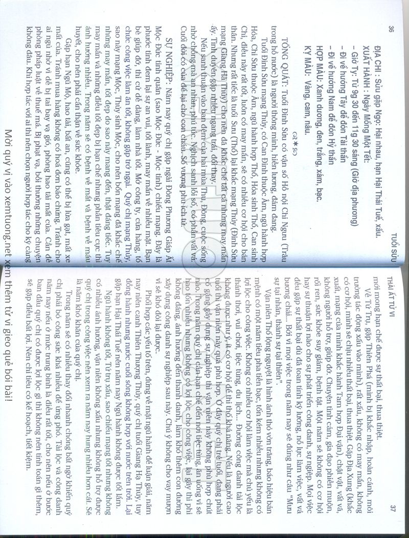 (Lưu ý: Thái Ất Tử Vi được chúng tôi scan từ sách, do đó mỗi tuổi sẽ có nhiều trang, quý vị xem xong hãy nhấn vào trang tiếp theo để xem hết phần tuổi muốn xem. Nếu quý vị xem bằng điện thoại thì hãy kéo qua lại để xem phần bị khuất.)